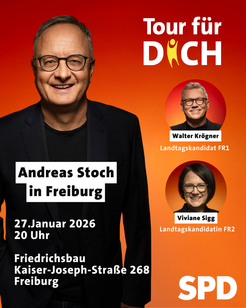 Unser SPD-Spitzenkandidat Andreas Stoch kommt nach Freiburg, und wir möchten Sie herzlich dazu einladen: